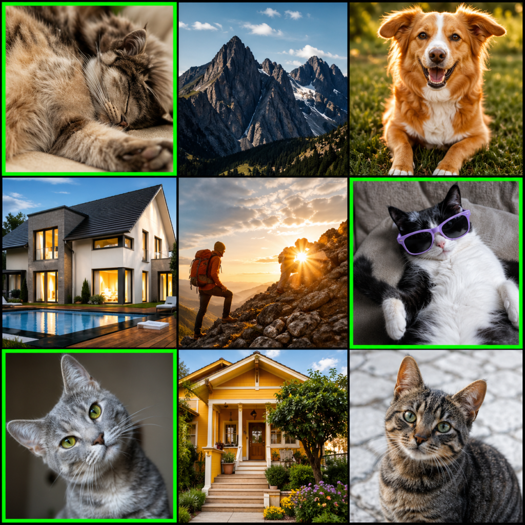 No Captcha abaixo o usuário deveria ter assinalado em verde todas imagens que continham gatos.